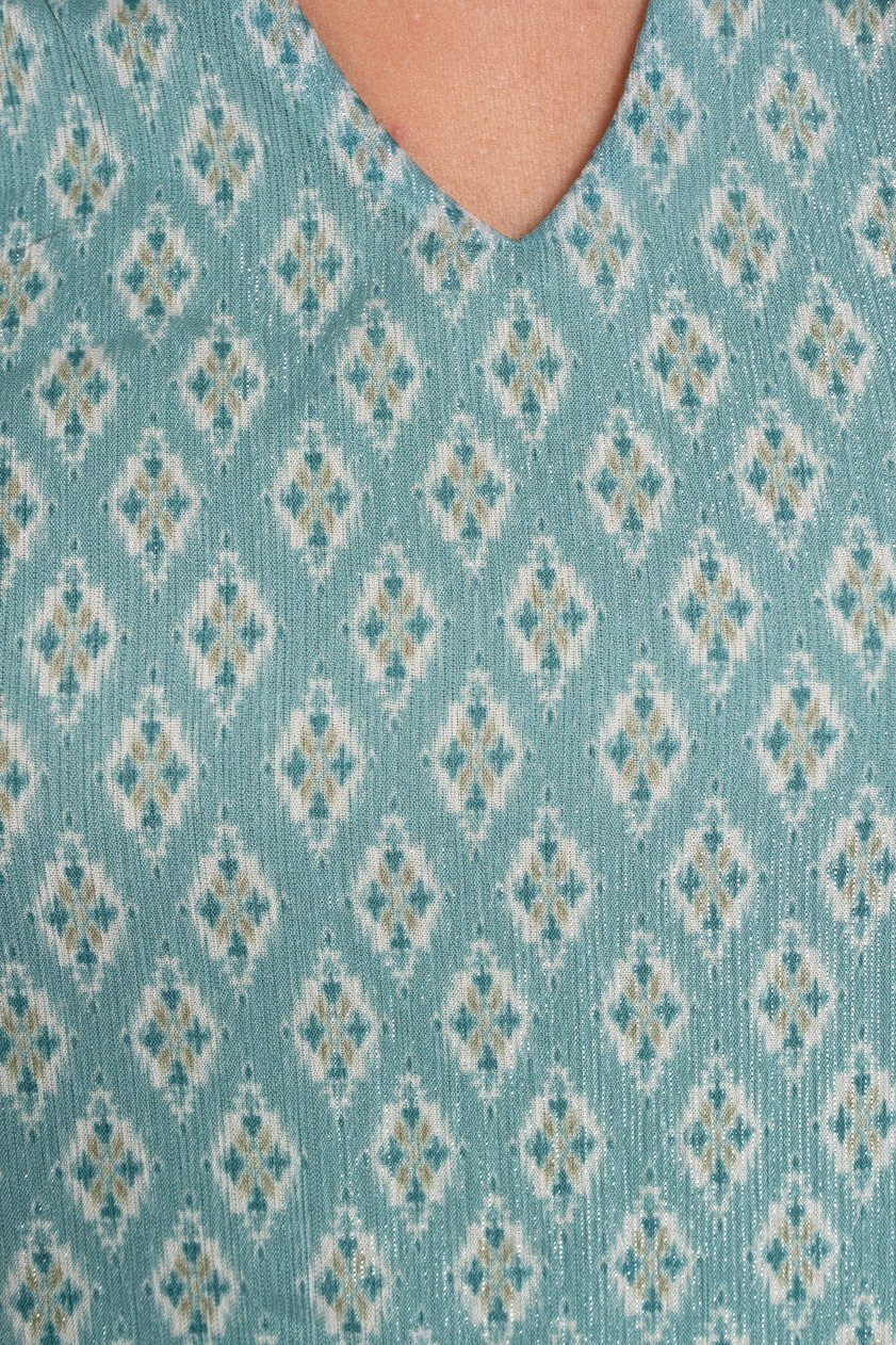 Blusa estampada de manga larga con escote triangular y efecto choker en el cuello. Goma en los puños y en la parte inferior. Talla única, sirve para xs/s/m. Composición: 100% poliéster.