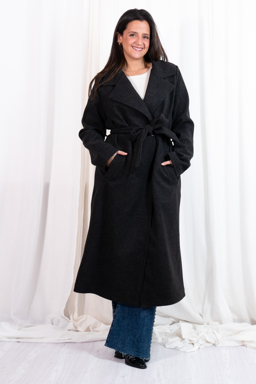 Abrigo largo con bolsillos y cinturón para atar en la cintura. Composición: 100% poliéster.