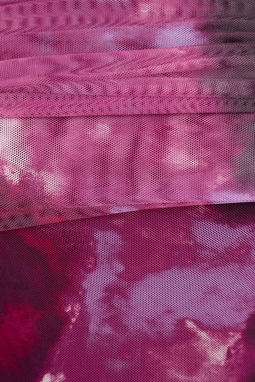 Vestido de corte midi confeccionado en tejido de gasa con forro estampado. Tiene escote palabra de honor doblado tipo bardot. Composición: 95% viscosa, 5% elastan.