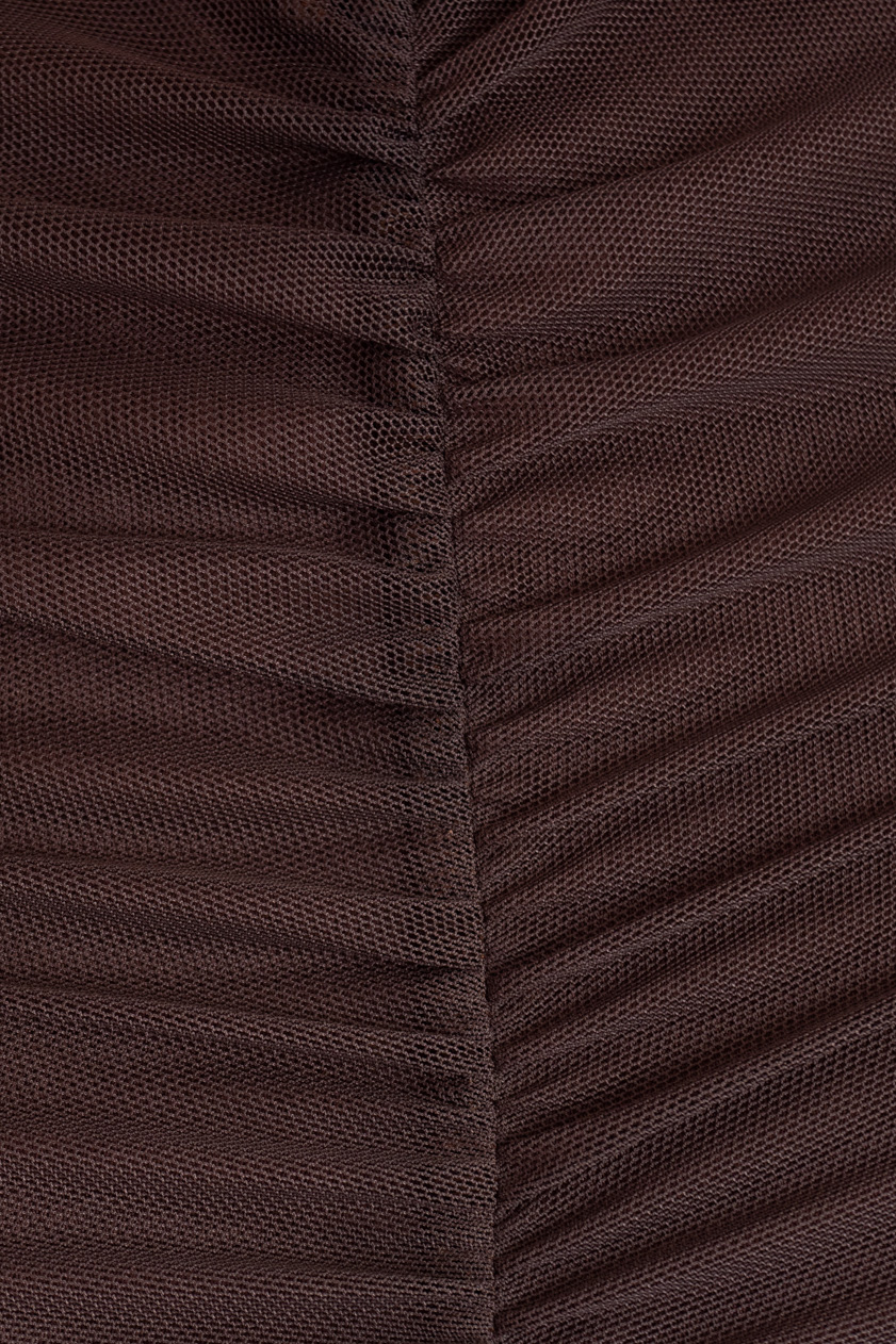Vestido de corte midi, confeccionado en tejido de gasa, con forro y manga larga. Lleva fruncidos en la parte delantera. Talla única, sirve para xs/s/m. Composición: 92% poliéster, 8% elastan.